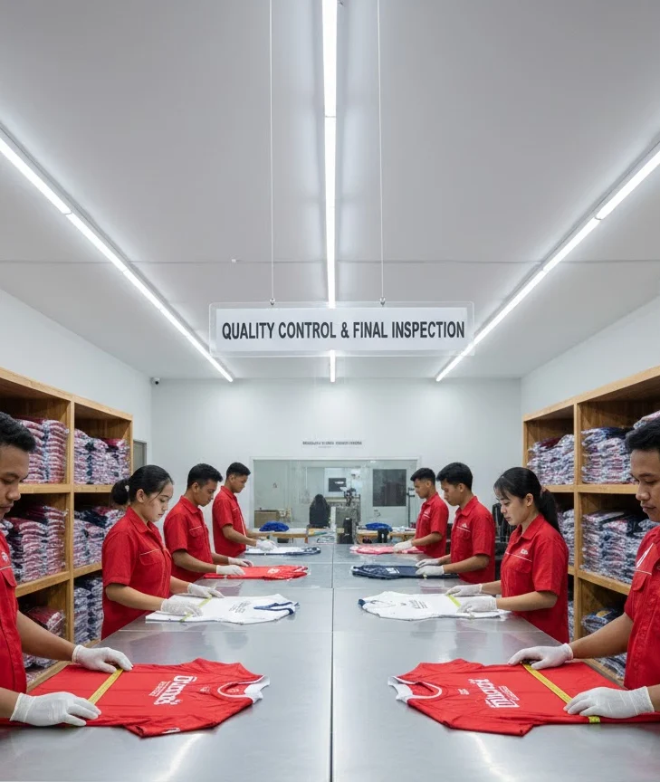 Setiap jersey diperiksa secara menyeluruh untuk memastikan kualitas jahitan, warna, ukuran, dan detail desain sesuai standar sebelum dikemas.