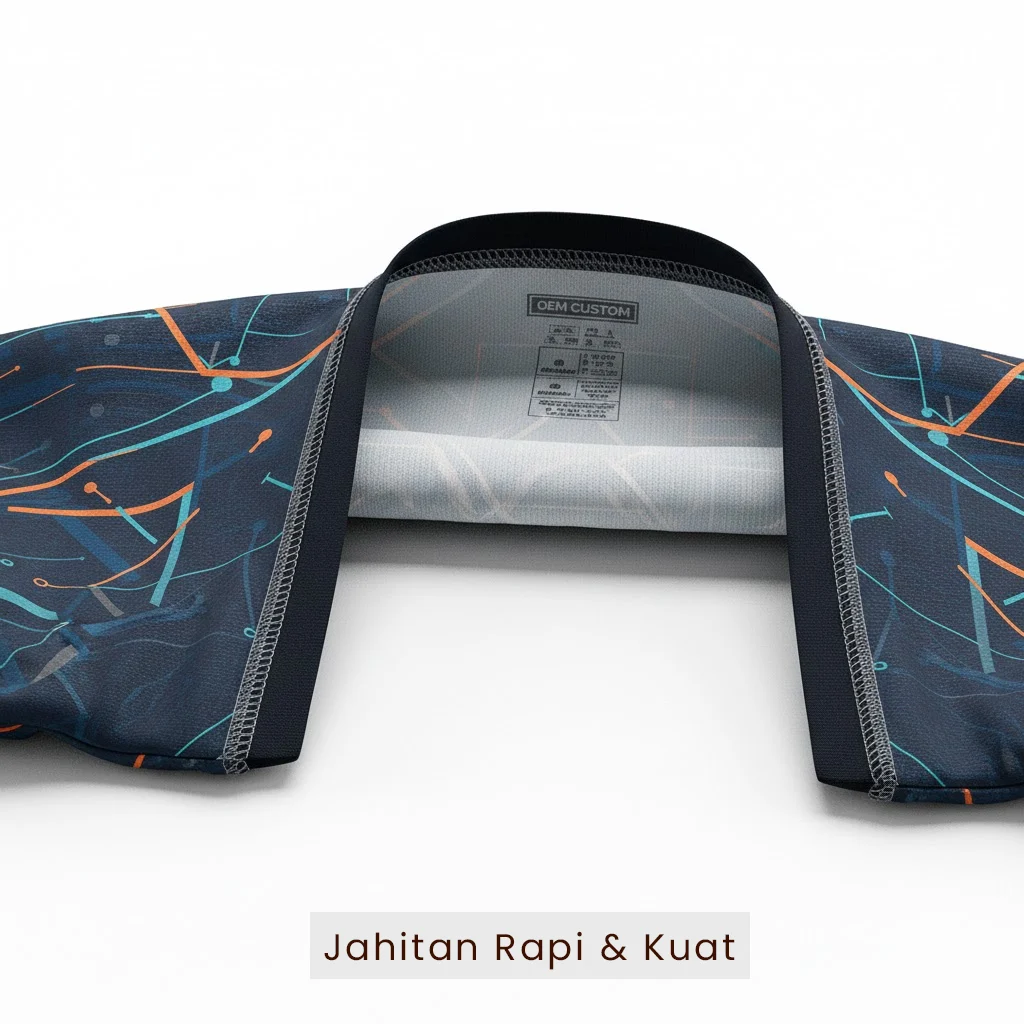 Setiap jersey dijahit dengan standar industri untuk memastikan hasil rapi, kuat, dan konsisten di setiap batch produksi.